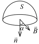 的均匀磁场中作一半径为r的半球面S,S边线所在平面的法线方向单位矢量