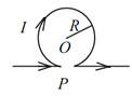 如图所示,无限长直导线在P处弯成半径为R的圆,当通以电流 I 时,则在圆心O点的磁感强度大小等于( )?