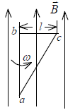 如图所示,直角三角形金属框架abc 放在均匀磁场中,磁场B平行于ab 边,bc 的长度为l.当金属框架绕ab 边以匀角速度ω转动时,abc 回路中的感应电动势