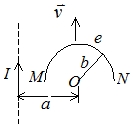 载有电流的I长直导线附近,放一导体半圆环MeN与长直导线共面,且端点MN的连线与长直导线垂直.半圆环的半径为b,环心O与导线相距a.设半圆环以速度 V平行导线平移,求MN两端的电压
