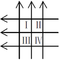 如图所示,6根无限长导线互相绝缘,通过的电流均为I,区域Ⅰ,Ⅱ,Ⅲ,Ⅳ均为相等的正方形,那么指向纸内磁通量最大的区域是( )
