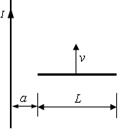 如图所示,一长直导线中通电流I=10A ,有一长为L=0.2m的金属棒与导线垂直共面。a =0.1m,当棒以速度v = 2 m/s 平行于长直导线匀速运动时,棒中产生的动生电动势大小为 ,方向是 。