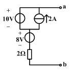 如图所示一有源二端线性网络,其戴维宁等效电路中电压源为( )V。