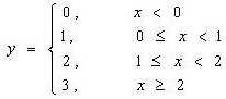 E: If x < 0 Then y = 0If 0 <= x <1 Then y = 1If 1 <= x < 2 Then y = 2If x >= 2 Then y = 3