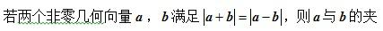 已知几何向量 a, b 满足 |a + b| = |a – b|, 则 a 与 b 垂直。