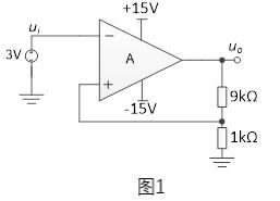 根据图1中给出的电路和参数,回答理想运放A此时的输出等于多少?