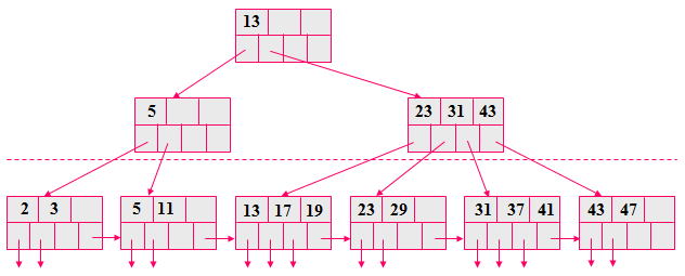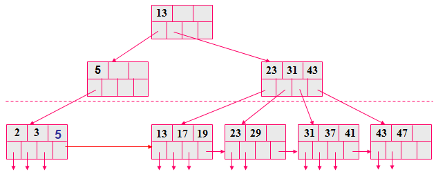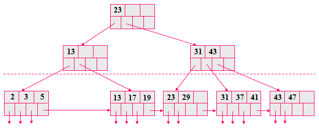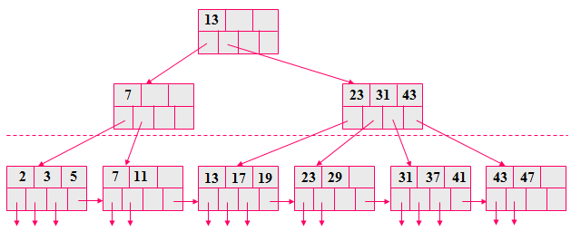 B: 非叶结点某索引项X的左侧指针,指向键值=X记录所在的主文件存储块