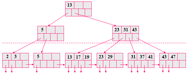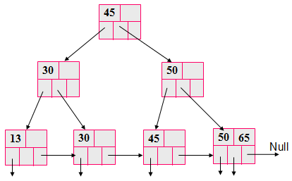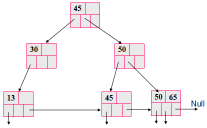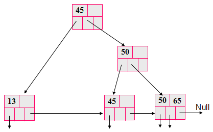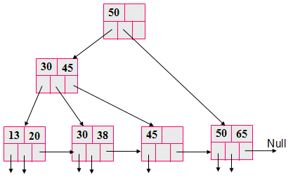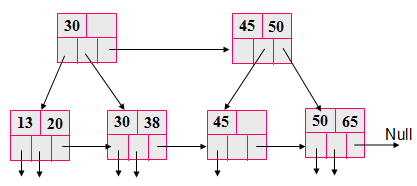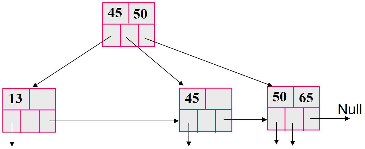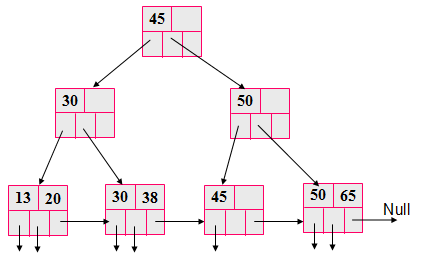若要在此B+树上增加一个键值为45的索引项,插入完成后的B+树是___________。
