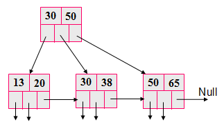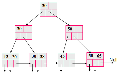 已知一棵B+树,如下图所示。若要在此B+树上删除一个键值为30的索引项,删除完成后的B+树是___________。
