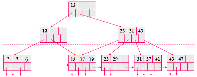 B: 非叶结点某索引项X的左侧指针,指向键值=X记录所在的索引文件存储块