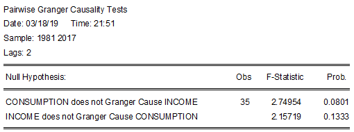 A: 粮食产量是降雨的格兰杰原因,所以粮食产量可以预测降雨量