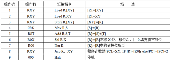下表是Vcomputer机器的汇编指令与机器指令对照表,下列用Vcomputer汇编指令实现“将寄存器1和寄存器0