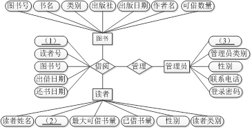 有一个图书管理系统,一本图书可被多个读者借阅,一个读者可借阅多本图书,一个管理员既可管理图书信息,也可管理读者信息,图书,读者,管理员3个实体的属性如下: