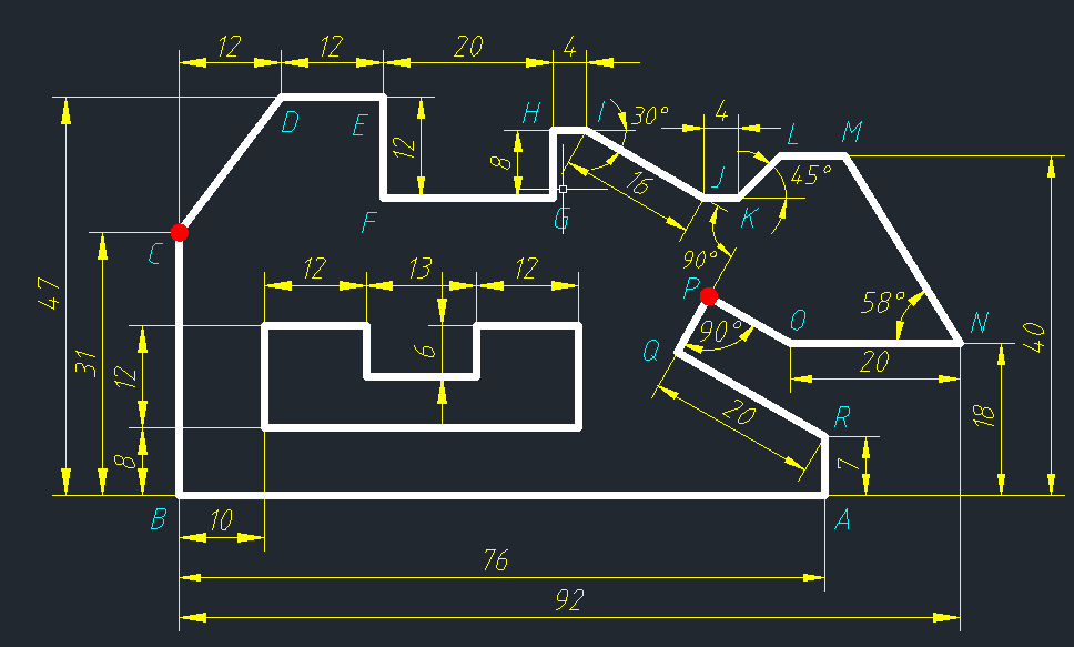 根据图中尺寸画图、用DI命令测出点C到点P之间的距并填空。建议取整数。