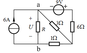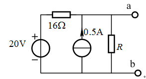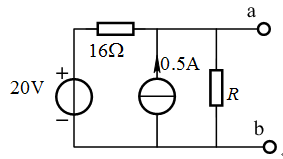 当R=16欧姆时,下图所示电路中ab端口的开路电压为 V。