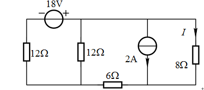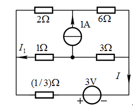 电路如下图,用叠加定理计算电流I= A。