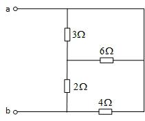 下图所示电路中,端子a、b之间的等效电阻为_____________Ω。(答案若为整数,则采用整数;若不为整数,则采用小数,且精确到小数点后第2位数据,四舍五入,注意单位已经给定,答案中只需要填写数字,如果填写了单位会不得分。填空题都按照这个要求)
