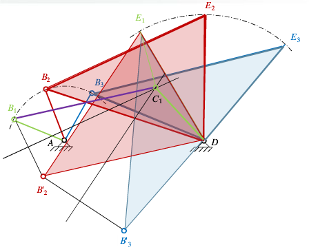 函数机构的图解法设计,最终归结到按给定若干组两个连架杆对应位置的平面四杆机构设计。其采用的方法是: