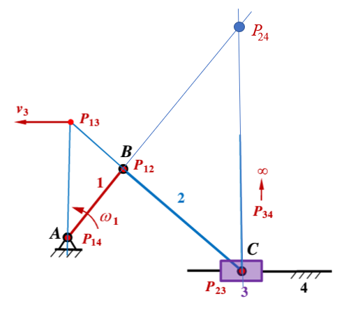 试判断图示曲柄滑块机构的连杆2和滑块4的瞬心P24的位置是否正确?