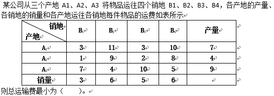 甲、乙、丙、丁四人将有一份中文说明书译成英、日、德、俄四种文字。他们将中文说明书翻译成不同语种的说明书所需时间分别为2 15 13 4;10 4 14 15;9 14 16 13;7 8 11 9,则所需总时间最少为( )。