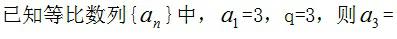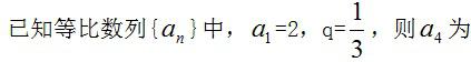 等比数列{an}:9,3,1,…,则公比q = ( )