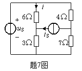 7. 如图所示电路,当us=9V,is=0A时,电流i=( )