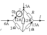 5. 如图所示某电路中的部分电路,各已知的电流及元件值已标示在图中电压源US、电流I 和电阻R分别为( )
