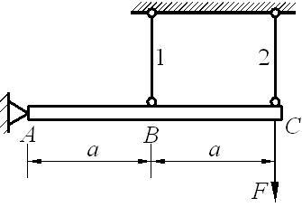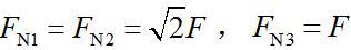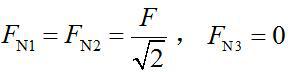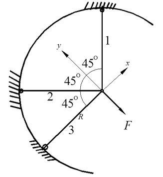 材料、横截面面积、长度均相同的3根杆铰接于A点,结构受力如图所示,则3根杆的内力分别是( )。
