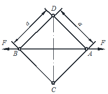 如图所示正方形桁架中5根杆的抗拉刚度均为EA,若各杆均为小变形,则AB两点的相对位移是( )。