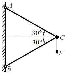 一杆系结构如图所示,设两杆拉压刚度EA为相同常数,则节点C的水平位移为0。
