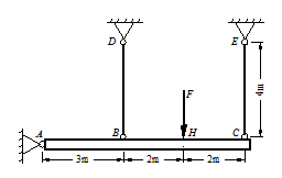 图示刚性梁在A点铰接,B和C点由钢索吊挂,作用在H点的力F引起C点的铅重位移为10mm,钢索CE和BD的应变分别为( )。