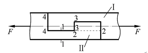 图示两木杆(Ⅰ和Ⅱ)连接接头,承受轴向拉力作用,下面四个选项不正确的是( )。