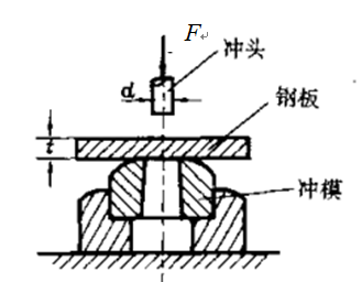 冲床如图所示,若要在厚度为t的钢板上冲出直径为d的圆孔,则冲头的冲压力F必须不小于( )。已知钢板的剪切强度极限