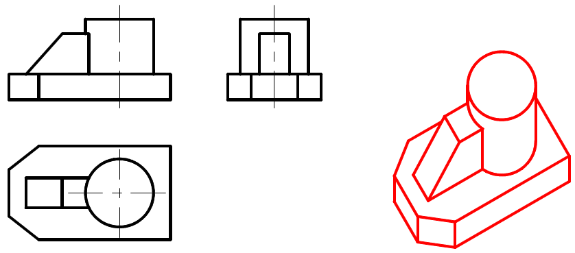 答案: 【 In the right view, the side away from the front view is the back of the solid;