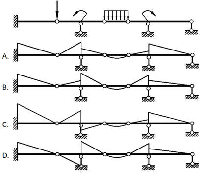 图示多跨梁的弯矩图大致形状正确的是( )