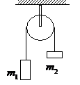 如图所示,一轻绳跨过一个定滑轮,两端各系一质量分别为m1和m2的重物,且m1>m2.滑轮质量及轴上摩擦均不计,此时重物的加速度的大小为a.今用一竖直向下的恒力F=m1g代替质量为m1的物体,可得质量为m2的重物的加速度为的大小a′,则