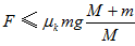 质量分别为m和M的滑块A和B,叠放在光滑水平桌面上,如图所示.A、B间静摩擦系数为ms,滑动摩擦系数为mk,系统原处于静止状态.今有一水平力作用于A上,要使A、B不发生相对滑动,则应有
