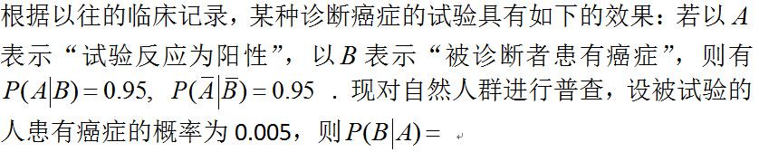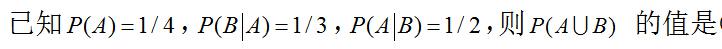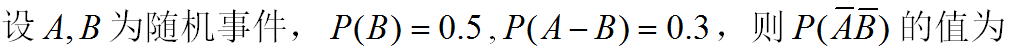 设事件A, B仅发生一个的概率为0.3,且P(A)=0.2, P(B)=0.3, 则P(B|A)的概率为