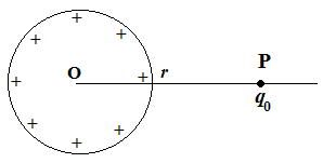 如图,一总电量为正的导体球,它的附近P点产生的场强为