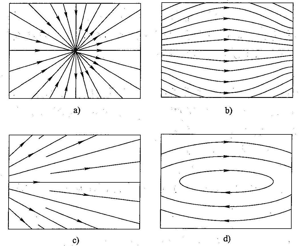 如图所示,图中为四种不同的电场分布,假定图中没有电荷。那么哪个图表示的是静电场?