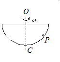 一光滑的内表面半径为10 cm的半球形碗,以匀角速度绕其对称OC旋转.已知放在碗内表面上的一个小球P相对于碗静止,其位置高于碗底4 cm,则由此可推知碗旋转的角速度约为