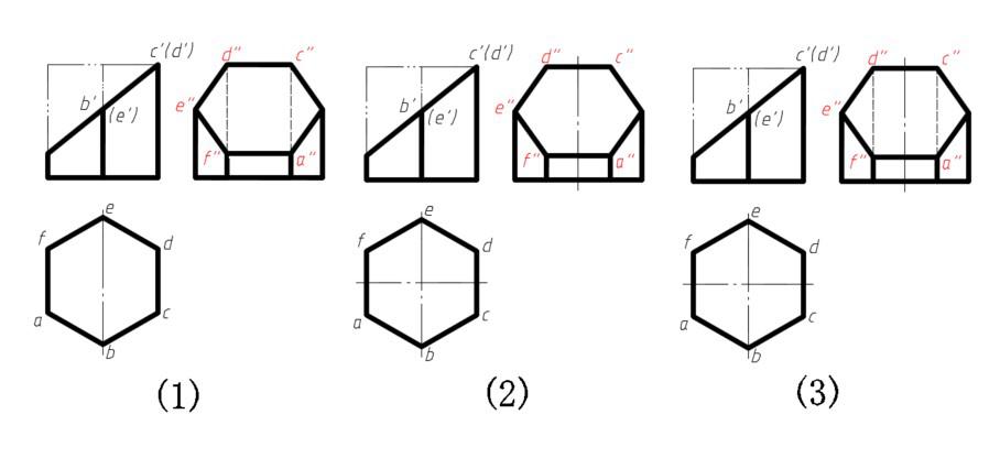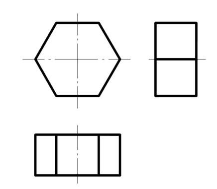 下图中以底平面平行于正投影面放置的正六棱柱体所绘制的三视图是否正确 ( )。