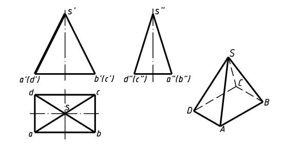 根据四棱锥的三视图和立体图,正确表述各直线名称的是( )。
