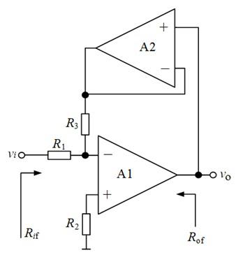 由集成运放A1、A2组成的反馈放大电路如图所示,设A1、A2均为理想运放。试求输入电阻Rif。