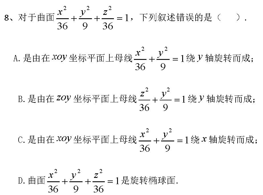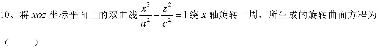 答案: 【 x^2/a^2-y^2/c^2-z^2/c^2=1】