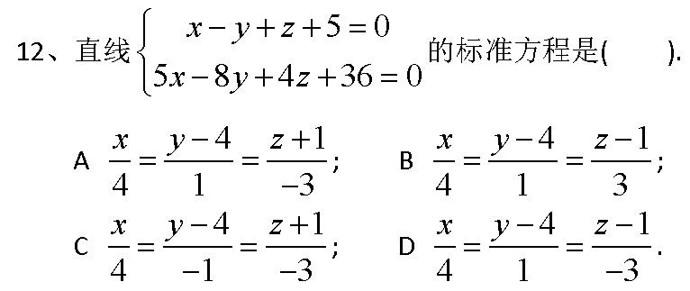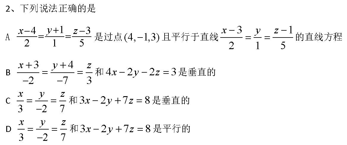 答案: 【 (x-2)/2=(y+3)/0=(z-4)/4】