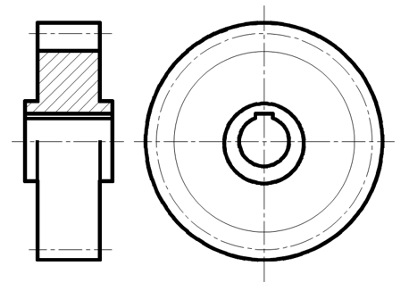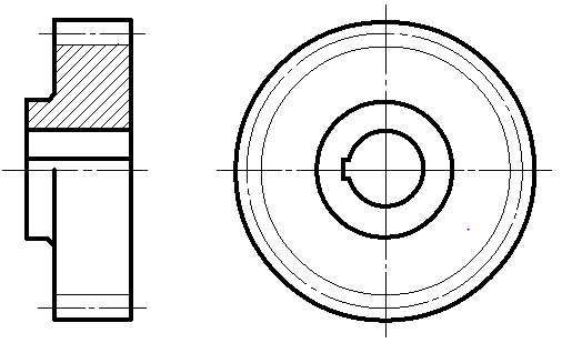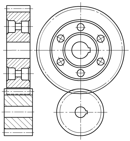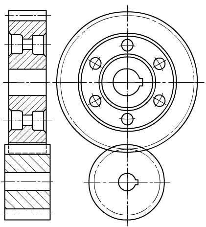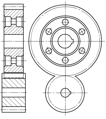 内螺纹的俯视图(圆视图)大径用约3/4细实线圆表示。