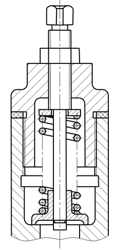 在装配图中,弹簧后面的机件按不可见处理,可见轮廓线只画到弹簧钢丝的剖面轮廓或中心线上。】