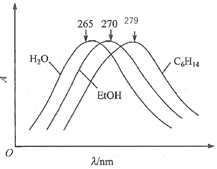 答案: 【 270-290 nm谱带是n→π*禁阻跃迁产生,跃迁所需能量小】