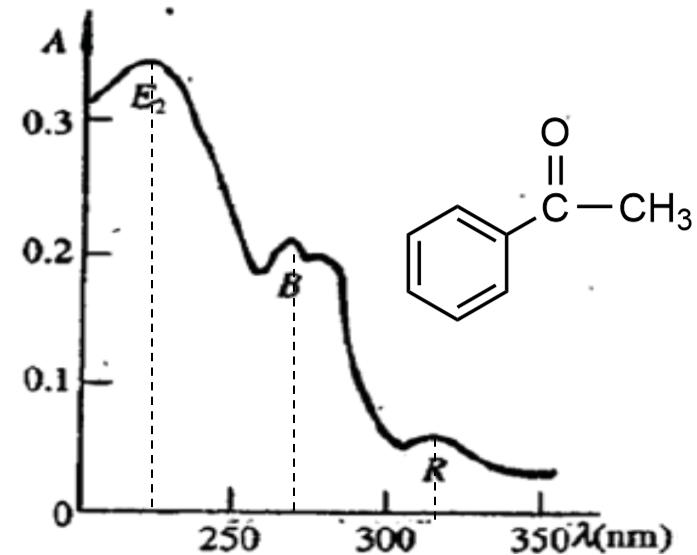 饱和的醛、酮在紫外区可能出现两个谱带,一个是λmax ~180 nm的强谱带,另一个是270-290 nm的弱谱带,由此可以推测
